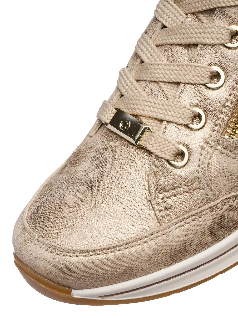- Wariant beżowy: posiada klasyczne sznurowanie oraz boczny zamek błyskawiczny, co pozwala na idealne dopasowanie do podbicia przy zachowaniu szybkości zakładania.