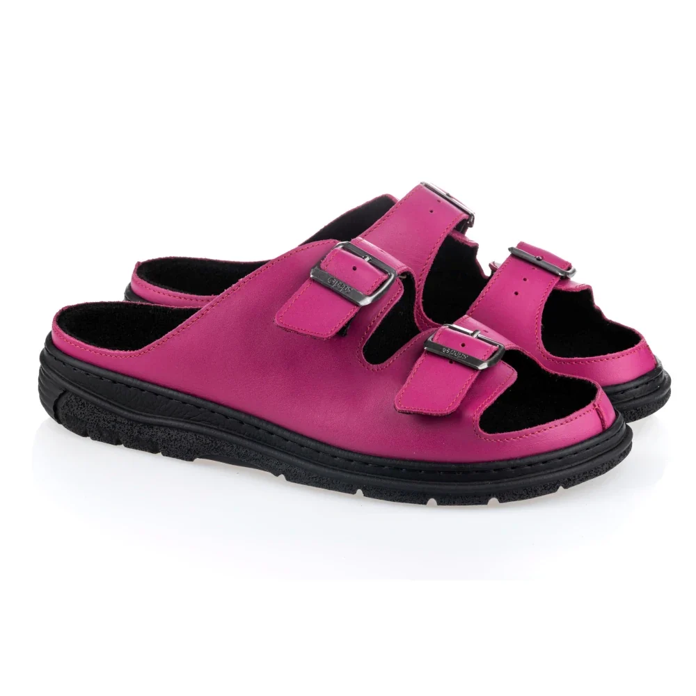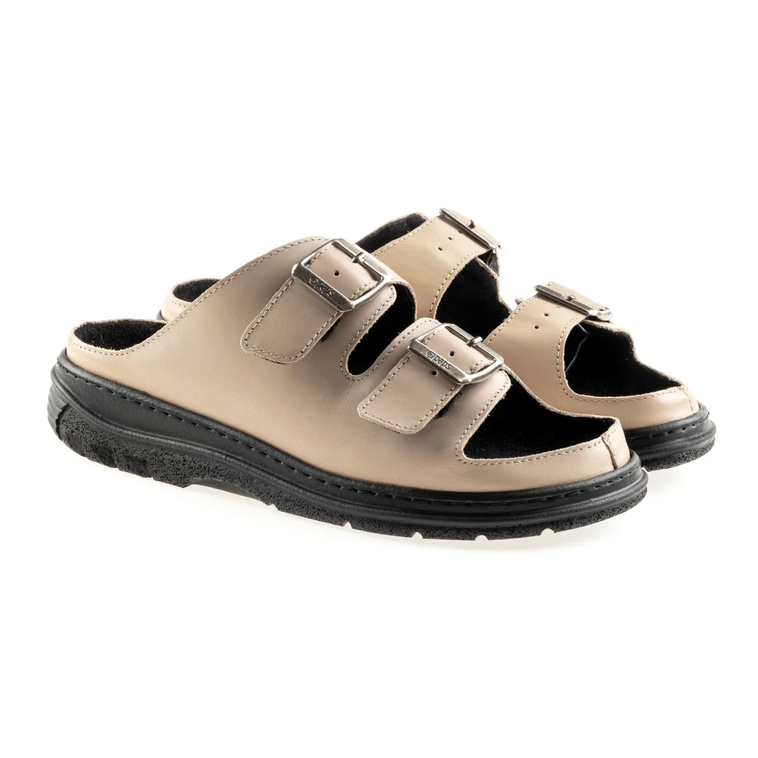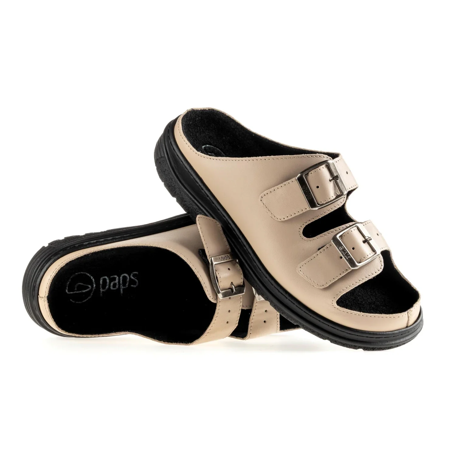 Klapki zdrowotne damskie, męskie PAPS ze skóry licowej, regulowane paski