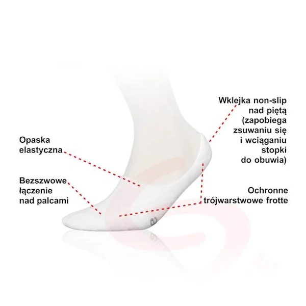 - Specjalne poliuretanowe wykończenie NON-SLIP nad piętą – stopka nie zsuwa się do buta