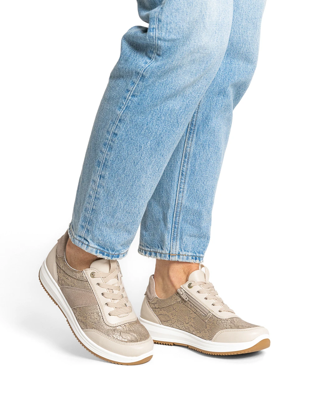 Sneakersy ARA OSAKA dają stopom więcej swobody, zmniejszają ucisk i pozwalają chodzić dłużej bez zmęczenia – nawet przy haluksach i szerszej stopie. To codzienny komfort i lekkość, które czujesz od pierwszego kroku, w nowoczesnej, sportowej formie.