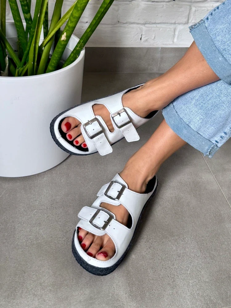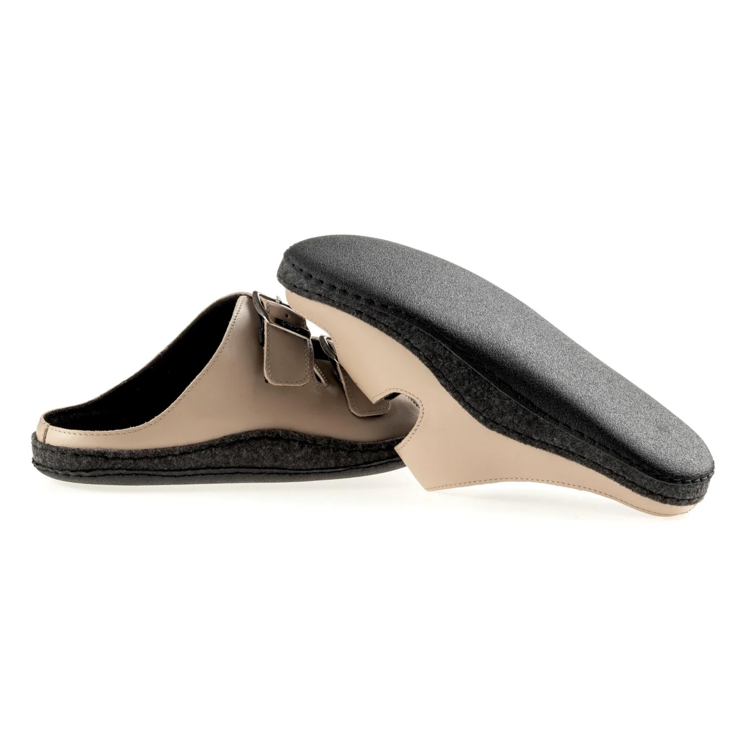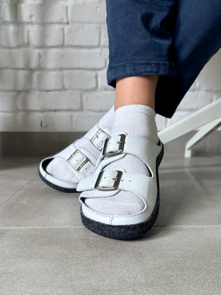 • Do wyboru skórzana lub gumowa podeszwa antypoślizgowa, która nie pozostawia śladów na suchej lub mokrej podłodze. Podeszwa ze skóry przeznaczona jest głównie do stosowania wewnątrz, czyli jako obuwie domowe, w gabinecie kosmetycznym czy fryzjerskim. Gumowa podeszwa doskonale nadaje się też do użytku zewnętrznego.